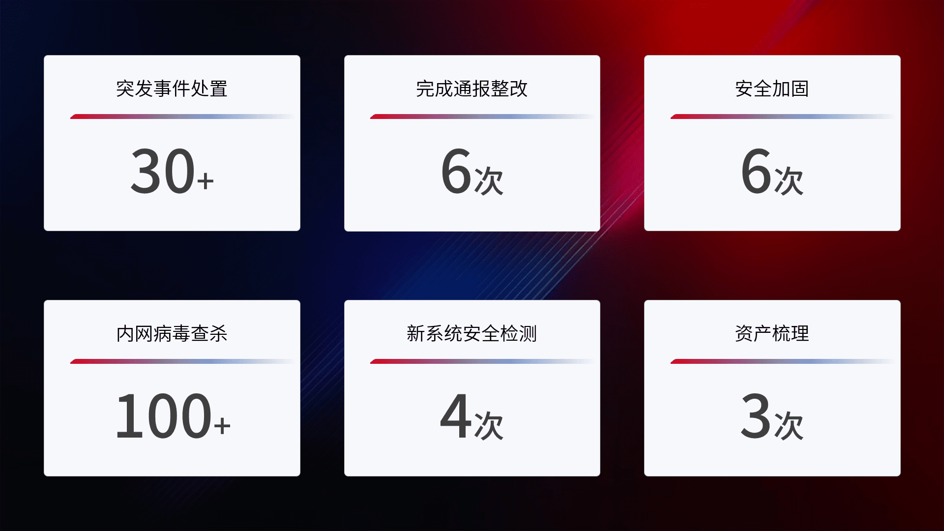网络安全加固与风险管理:通过技术加固手段,,如加强区域隔离,,缩减攻击内网横向移动的范围;优化现有网络安全管理制度,,,降低网络威胁暴露面,,,,减少被黑客攻击的可能性。。